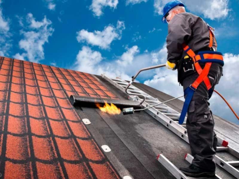 Если возникает потребность перекрытия плоской кровли или кровли с небольшим углом наклона — до 10 градусов, как правило, такие кровли делают на гаражах, или хозяйственных постройках, то в качестве покрытия можно использовать рулонные материалы. Например, рубероид, или его новый аналог — бикрост. Материал надёжно защитит кровлю от протеканий при правильной укладке. Он состоит из бумаги, пропитанной и покрытой битумом. Или в качестве основы, как у бикроста, используется стеклохолст. Покрытия могут быть посыпаны гранулянтом и используются для наружного слоя. Так как данные материалы укладывают в два слоя с перекрыванием стыков, то первый слой изготавливается без посыпки. При монтаже необходимо использовать дополнительные материалы. Это праймер битумный и непосредственно сам битум, разогретый до жидкого состояния.