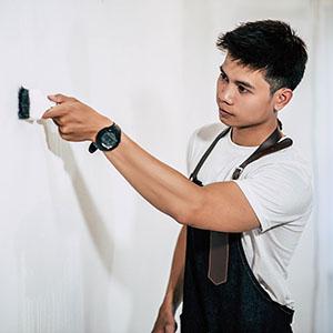 b Предварительно в тех местах, где присутствуют наиболее глубокие впадины, наносится грунтовка. Затем эту область покрывают штукатуркой. Правда, возможна и такая ситуация, когда стена будет настолько неровной, что локальным ремонтом обойтись не получится. Тогда придется полностью штукатурить или шпатлевать стену. Но лучше по возможности этого избегать, поскольку подобное мероприятие требует не только серьезных вложений и усилий, но и мастерства работника.