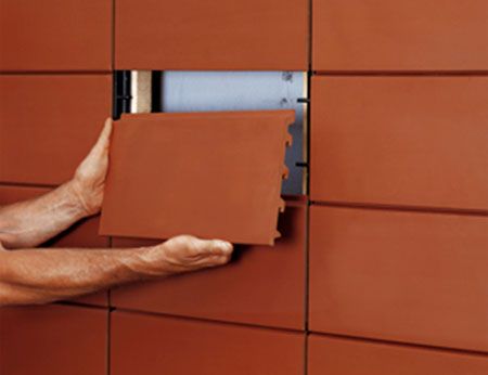 3. Терракотовая плитка. Производится из глины специального сорта – каолиновой, которая при производстве проходит обжиг при температуре выше 1000 градусов. Такой материал имеет пористую структуру, благодаря чему он обеспечивает достаточно высокий уровень теплоизоляции стен. При изготовлении терракотовой плитки дополнительные красители не используются, поэтому ее цветовая гамма весьма ограничена. Она выпускается в следующих цветах: светло-коричневый, красно-коричневый и черный.