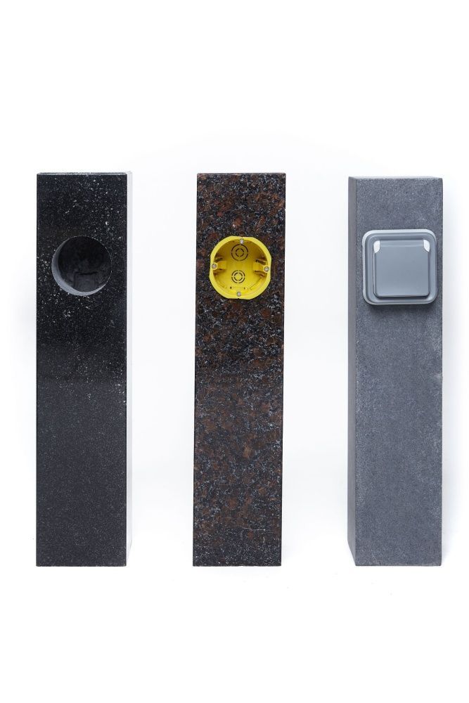 Современная садово-парковая розетка из гранита габбро-диабаз с гладкой полированной поверхностью. Идеально подходит для современного уличного интерьера.