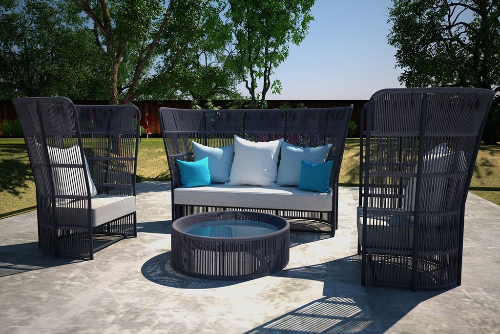 Группа для отдыха "Соната" - садовая мебель в эксклюзивном футуристическом дизайне изготовлена из премиальных материалов. В состав коллекции входит: кресло для отдыха низкое - 1 шт, диван низкий - 1 шт, столик кофейный большой - 2 шт.