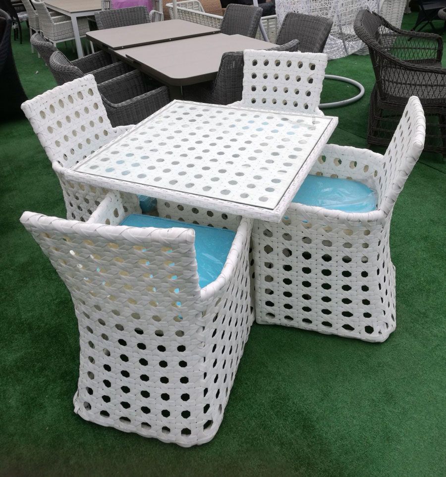 Обеденная группа "Гольс" - комплект премиальной мебели для сада и отдыха в элегантном белом цвете состоит из 5 предметов: столика и 4-х обеденных кресел. Высокое качество плетения и алюминиевый каркас обеспечивает долгое использование.