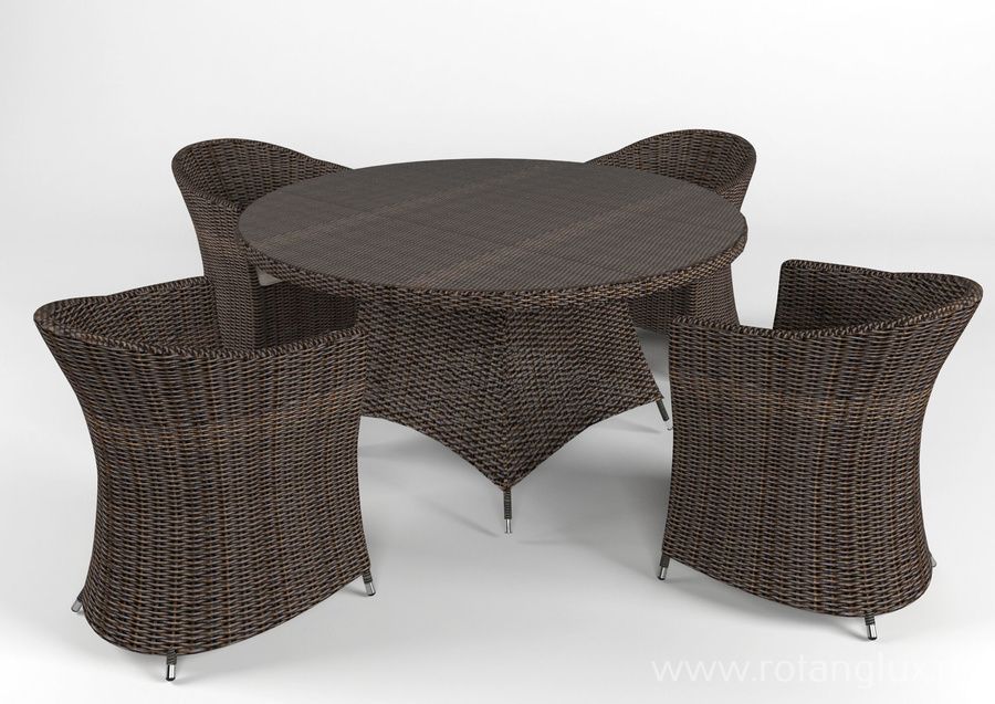 Обеденная группа "Малага" круглая - классическая серия мебели для отдыха из премиальных материалов. Состав комплекта: стол, имеющий покрытие из зеркального стекла 5 мм и кресла в количестве 6 штук, укомплектованные подушками из невыгорающей ткани.