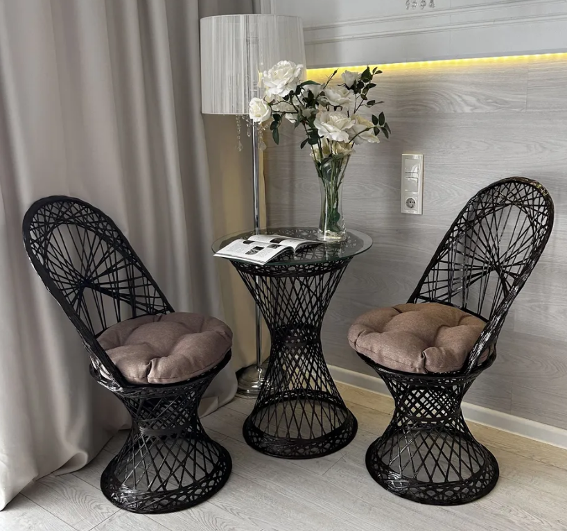 В набор входит два кресла и стол.