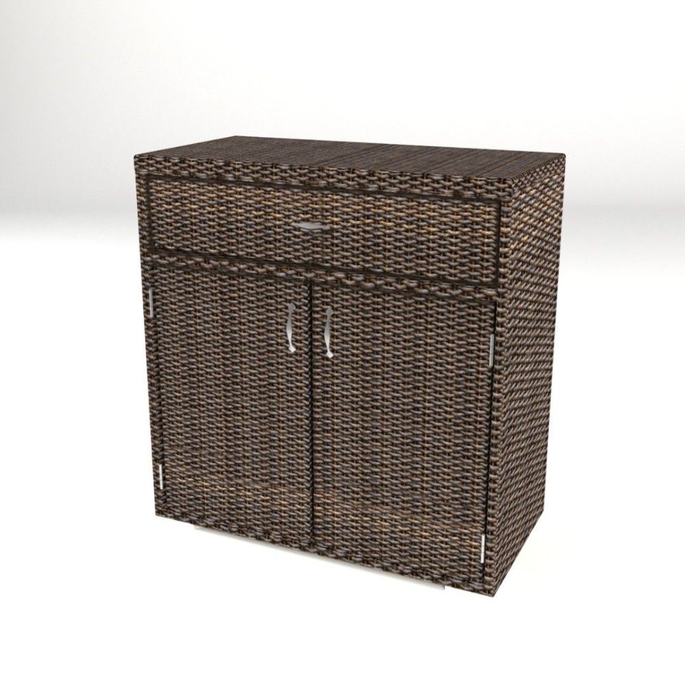 Комод малый "Малага" - модель с плетением из ротанга в темно-коричневом цвете. Материалы изготовления устойчивы к плохим погодным условиям. Внутри 1 полка и 1 ящик для хранения. Небольшой вес позволит с легкостью передвигать и менять расположение.