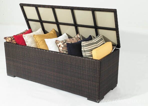 Сундук для подушек "Ланта" малый - стильный плетеный аксессуар из ротанга черно-коричневого цвета для хранения полезных мелочей и подушек. Прочный алюминиевый каркас обладает отличной устойчивостью к погодным условиям.