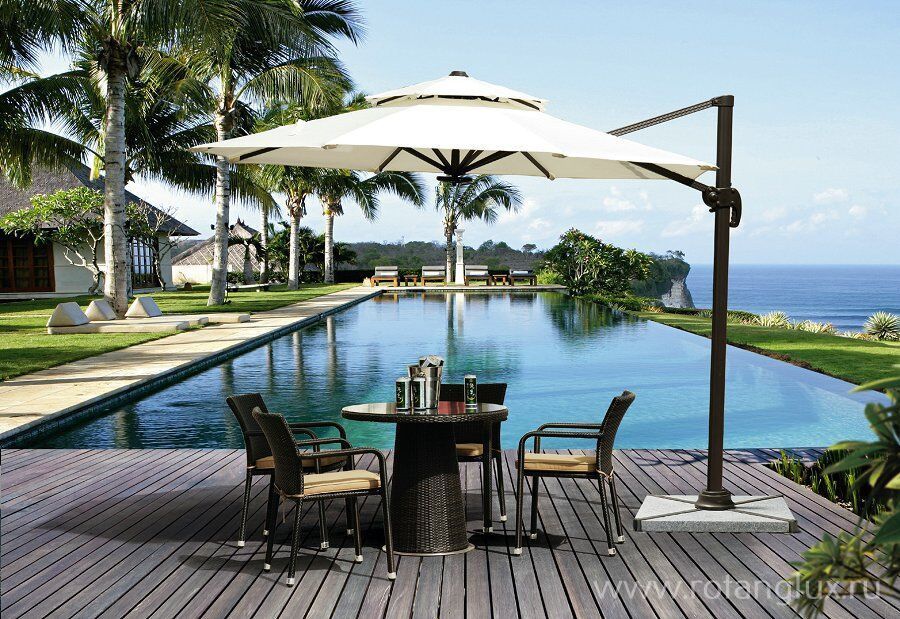 Зонт "Торино" d300 с механизмом наклона купола в любую сторону и поворота на 360 градусов. Покрытие купола не промокает, отлично защищает от воздействия УФ лучей и ветра. В комплект входят бетонные плитки в количестве 4 штук.