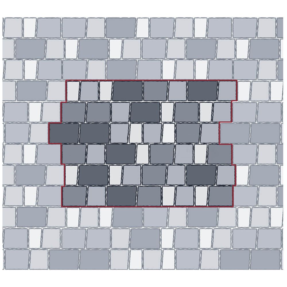 Дизайн этой формы удачно имитирует природный колотый камень. При этом отсутствие фасок и минимальные швы позволяют комфортно перемещаться по поверхности мощения на высоких каблуках, колясках, самокатах.