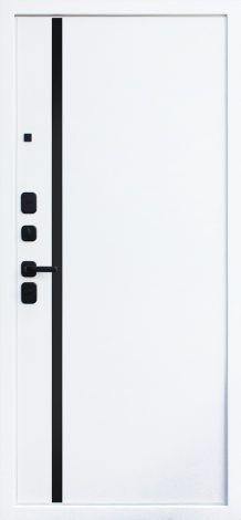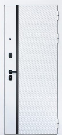 Экошпон.Наружный лист металла 1,5 мм. Дизайн панели ФЛС СО ВСТАВКОЙ ЧЕРНАЯ ЛАКОБЕЛЬ Объемная фрезеровка МДФ 10 мм, цвет «Белый матовый»; Наличник МДФ 80 мм, гладкие |