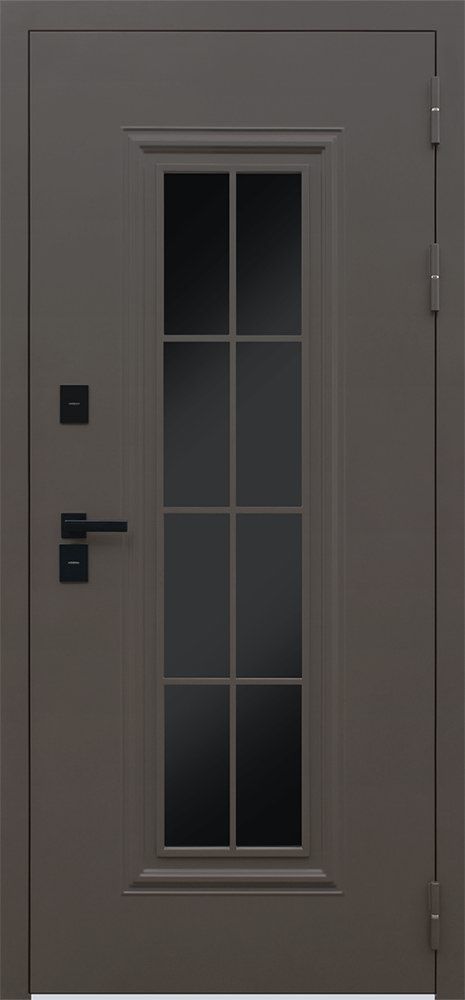 Модель «Тундра» с окном выполнена по технологии терморазрыва и оснащена лаконичной английской решеткой. Идеально подходит для загородных домов и коттеджей с холодным тамбуром. Конструкция обеспечивает надежную защиту, долговечность и высокую теплоизоляцию.