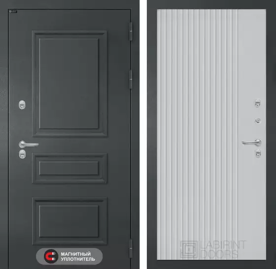 Сталь 1,5 мм, закрытый утепленный короб, усиливающие 2 ребра жесткости (вертикальные П-образные) |