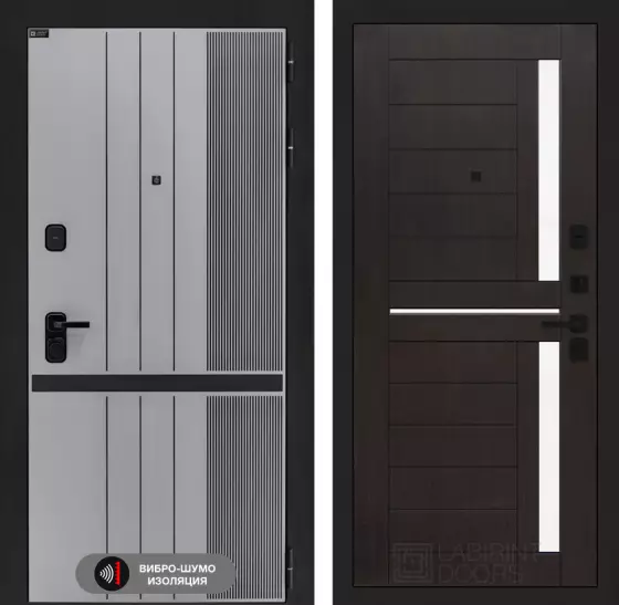 Фрезерованная МДФ панель 10 мм, цвет "Velluto Grigio" с патиной и вставкой из металла в цвет наличника |
