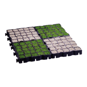 Здесь максимальная нагрузка на 1 кв. м составляет порядка 300 кг. Полимерная основа обеспечивает изделию отличную сопротивляемость атмосферным проявлениям, а срок службы такой решетки может достигать 25 лет. Оформление преимущественно представлено черным или зеленым цветом. Решетка занимает не более 10 % от общей площади закрытого основания. Все остальное пространство занято травой, которая практически полностью скрывает ячейки от посторонних взглядов. Такая конструкция совершенно беспроблемна в транспортировке, ее монтаж не составляет особых усилий, а при потребности доступно и повторное задействование уже эксплуатируемой решетки.