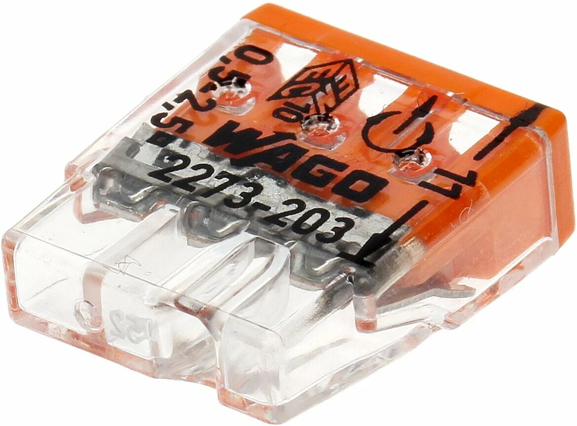 Клемма WAGO используется для соединения проводов с одной или несколькими жилами, а также разных сечений. У этого способа скрепления есть ряд преимуществ: высокая скорость соединения, надежность и удобство дальнейшей работы с проводами, их обслуживания.Проводящая часть соединителя изготовлена из меди.