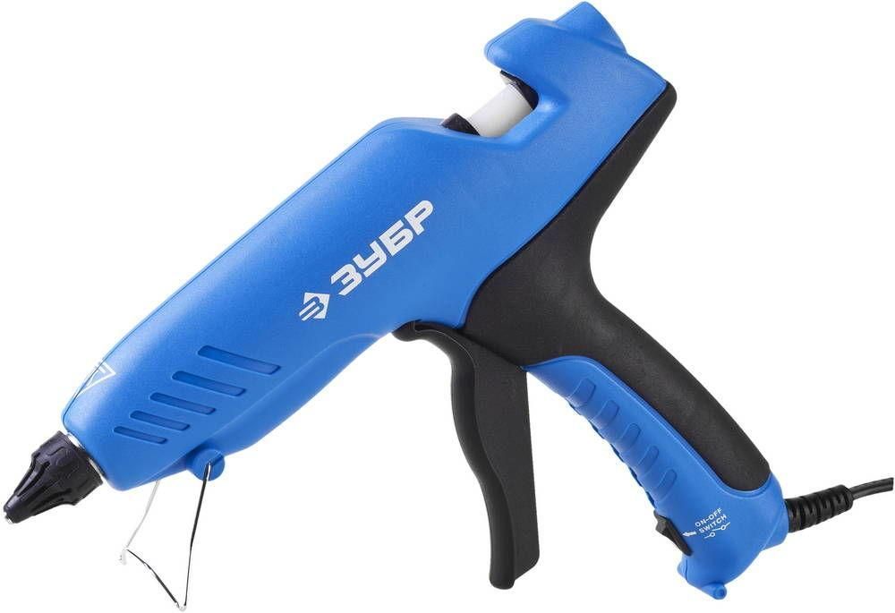 Пистолет ЗУБР клеевой (термоклеящий), эл, эргоном рукоятка, выключатель на рукоятке, рабоч темп 193град, d=12мм, 100Вт
