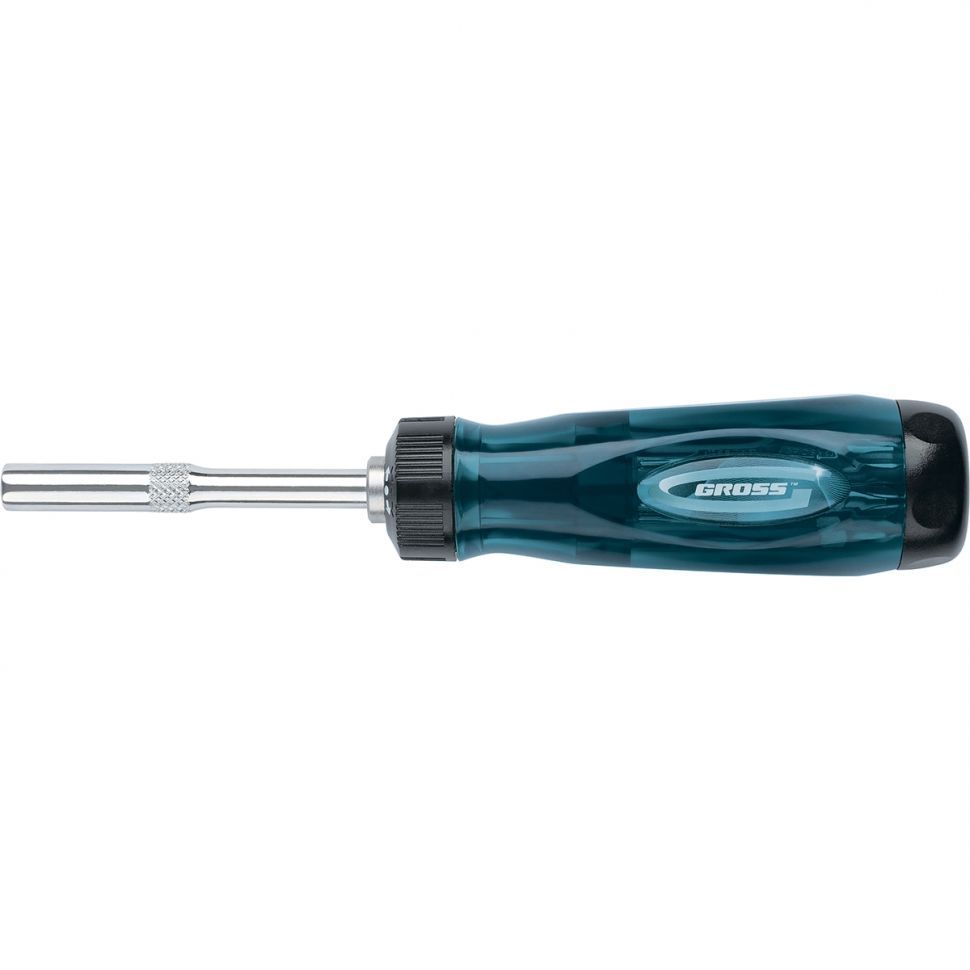 Отвертка реверсивная с удлинителем, трещотка 72 зуба, 12 шт, сталь S2// Gross
