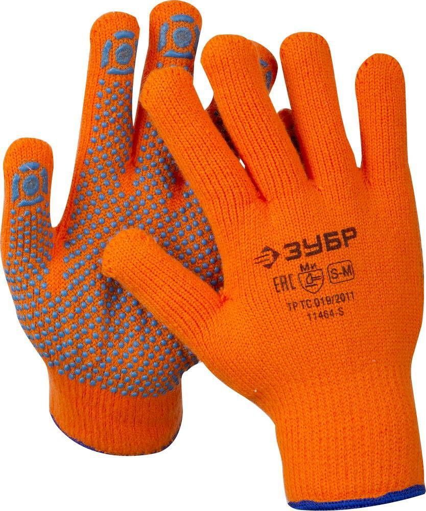 Перчатки утепленные Ангара, акриловые, с защитой от скольжения, 10 класс, сигнальный цвет, S-M, ЗУБР Профессионал