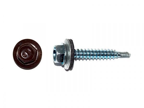 Cаморез кровельный 4,8х51 RAL8017, тёмно-коричневый (150шт), сверло РТ-1 по дереву