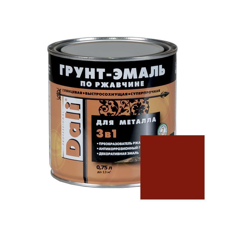 Грунтовка-эмаль - это многофункциональное покрытие, сочетающее в себе барьерные, протекционные и декоративные функции. Материал используется на всех видах металла и оцинкованных поверхностях, даже поверх плотной ржавчины, защищая от конденсата, атмосферных осадков и механических повреждений. Покрытие устойчиво к скачкам температуры, поэтому может применяться снаружи и внутри помещений, на теплопроводе и холодильных установках. Эмаль легко наносится, быстро высыхает и не источает неприятного запаха. Придаёт поверхностям элегантный красно-коричневый оттенок с зеркальным блеском.