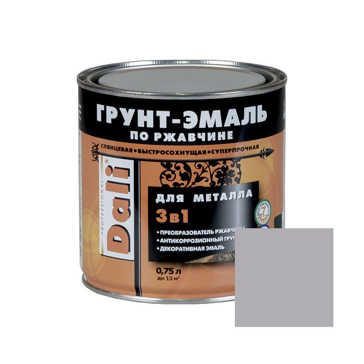 Специализированная эмаль для металла с защитой от ржавчины и истирания, универсальная для внутренних и наружных работ. Наносится на чистый или повреждённый материал, и образует прочную плёнку, выталкивающую химические загрязнители, жиры и воду. Эмаль не меняет цвет и форму под воздействием температур и ультрафиолета. Подходит для обработки велосипедов, радиаторов, сейфов, кованых элементов интерьера и экстерьера, ворот и дверей. Высыхает за 30-120 минут, не источая запаха, наносится ровным слоем независимо от типа малярного инструмента. Облает приятным серым цветом с зеркальным отблеском.