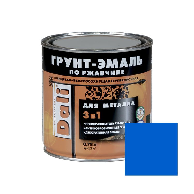 Грунт-эмаль - надёжная защита для металлических поверхностей от коррозии, трения, воздействия температур и слабых химикатов. Используется для продления срока эксплуатации и отделки стальных, медных, алюминиевых и других изделий снаружи и внутри помещений. Наносится в 2 слоя, обеспечивая хорошую адгезию, не растекаясь на вертикальных поверхностях и образуя упругий термостойкий слой. Окрашивает материал в приятный синий оттенок с блеском, делает металлические изделия ухоженными и приятными на ощупь. Не выцветает под воздействие УФ лучей. Не имеет запаха, безопасна для домашнего использования.