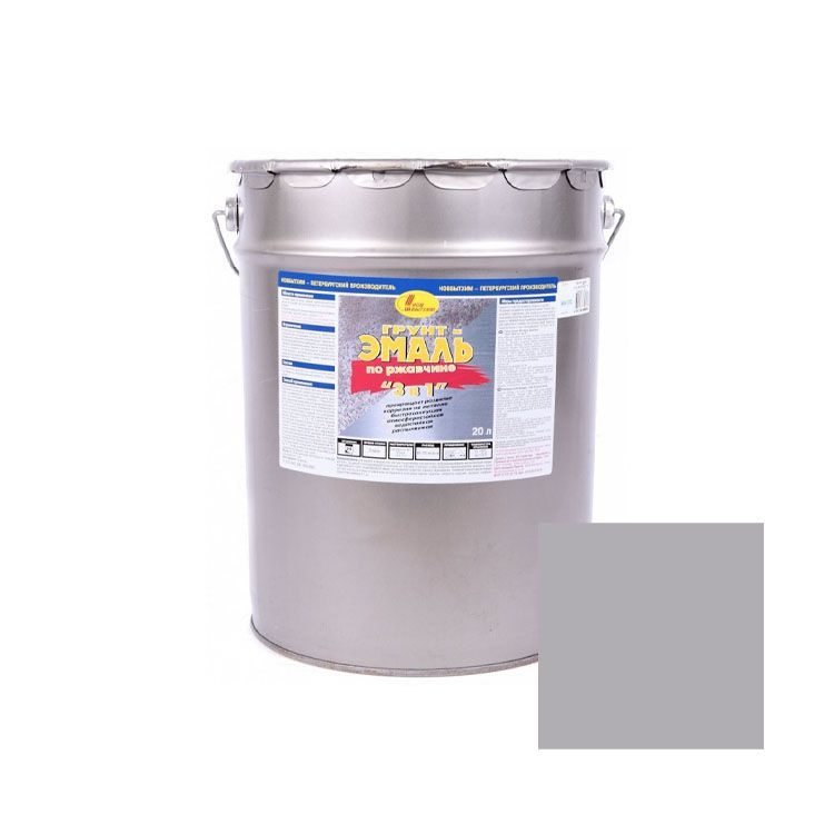 Грунтовочно-финишное алкидное покрытие для изделий из металла, оцинкованной кровли, гаражей и других конструкций. Снимает ржавчину, возвращает материалу прочность, ограждает от агрессивного воздействия воды, солей, минеральных масел, чистящих составов. Эмаль упругая по консистенции, качественно укрывает поверхность, выравнивает грубый рельеф, застывает аккуратной плёнкой, устойчивой к трению и температурным перепадам. Наносится кистью или краскопультом, быстро застывает. Покрытие нетоксично, может использоваться в помещениях. Имеет приятный серый цвет, облагораживает поверхности, придавая им ухоженный вид.