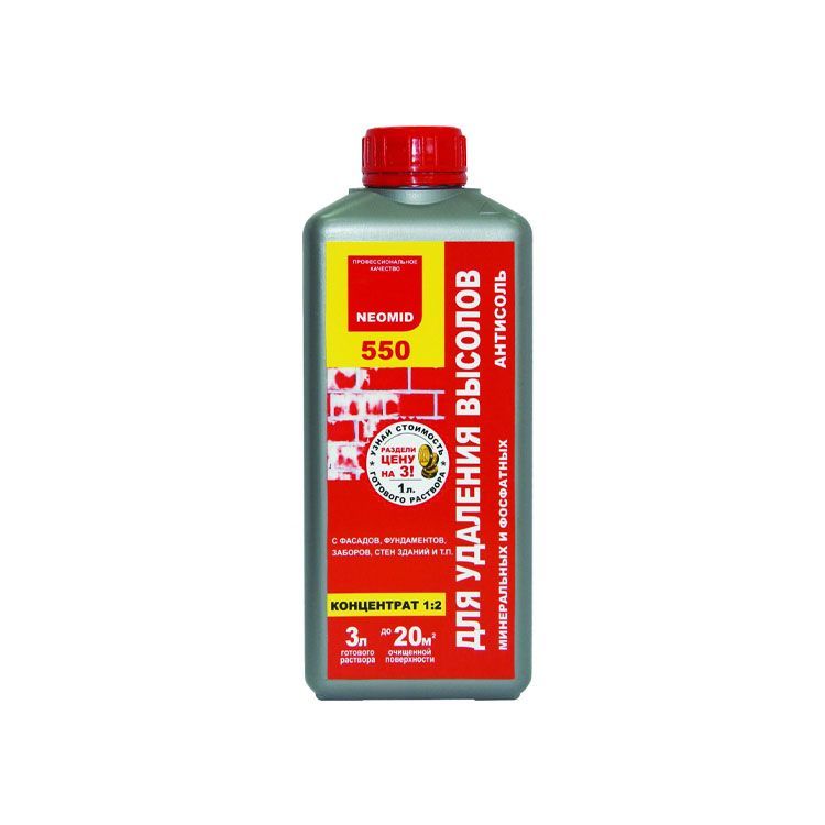 Даже при соблюдении строительной технологии на стенах домов могут со временем появляться солевые отложения, так называемые высолы. Этот очиститель как раз предназначен для удаления высолов различного происхождения. Он подходит для таких оснований как бетон, натуральный и искусственный камень, кирпич. Антисоль действует только на сами солевые отложения, он бережно относится к поверхности основания, никак не влияет на ее цвет, а также на свойства этого материала, не разрушает его структуру или кладочный раствор. Средство может наноситься вручную или с помощью краскопульта. Обработка может проводиться при положительных и отрицательных температурах, только в первом случае будет использоваться водный раствор, а во втором – спиртовой.