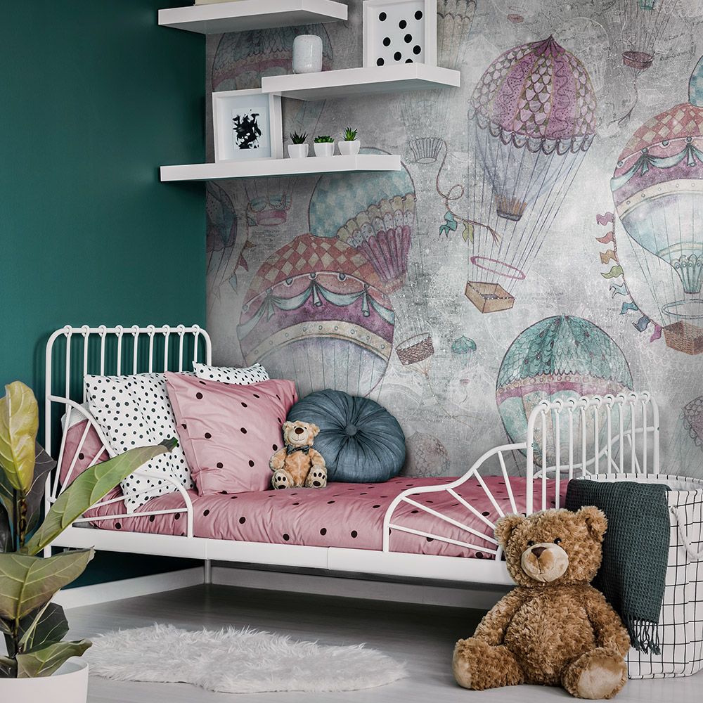 BALLOONS – обои, которые помогут создать в комнате ребенка романтическую, спокойную атмосферу, наполненную самыми светлыми эмоциями. Рисунок выполнен в виде изображений десятков воздушных шаров, подвесные корзины которых с нетерпением ждут своих путешественников. Обои выполнены в винтажном стиле, основа имитирует старинный холст или слегка потертую бумагу, напоминая афиши прошлых десятилетий.