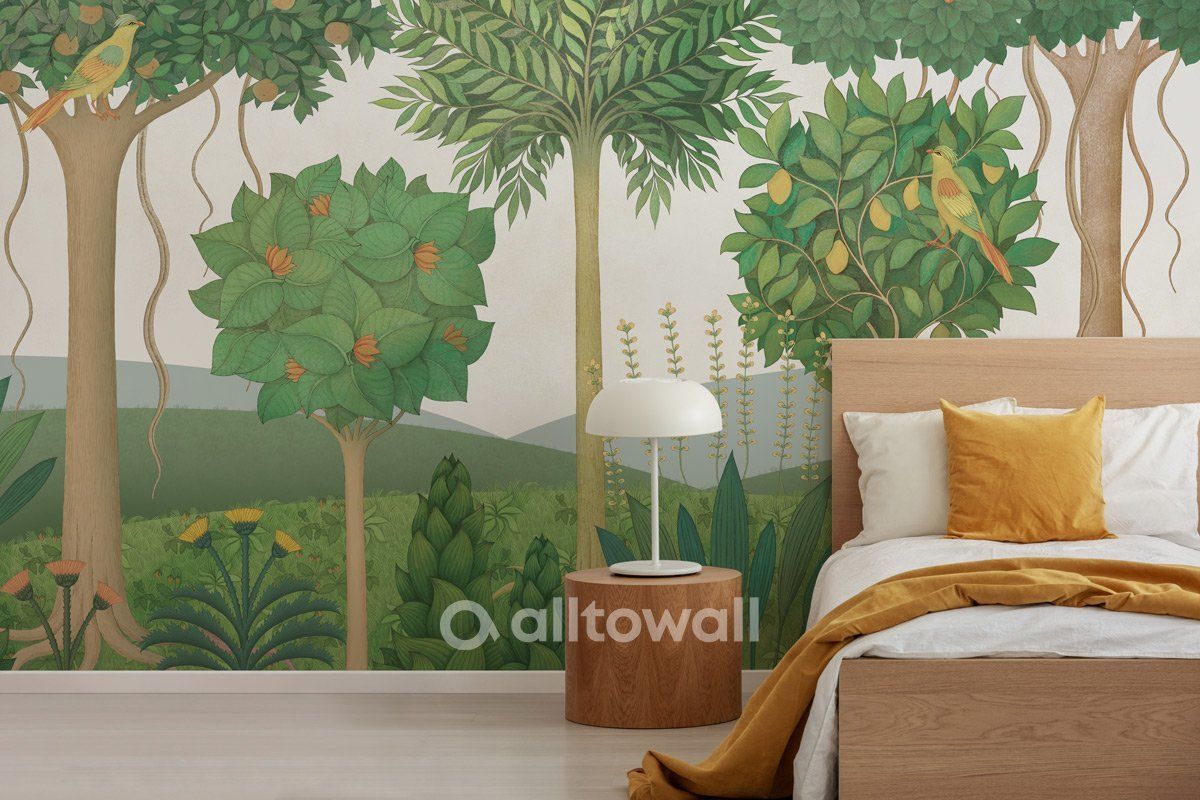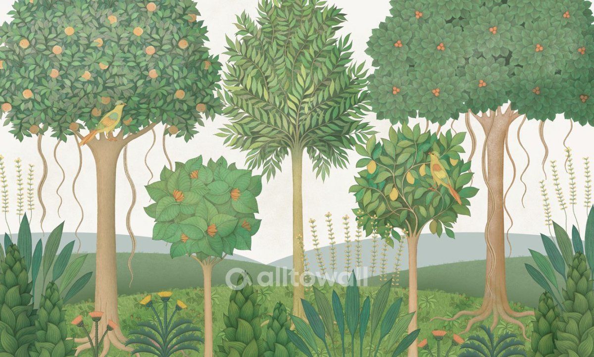 Бархатный сезон-1 – обои из серии, посвящённой цветущему саду. Для данного покрытия используется яркая палитра оттенков – зелёный, жёлтый, оранжевый, белый. Это создаёт определенное настроение, позволяет применять полотна в качестве акцента или для необычного, но очень привлекательного фона.