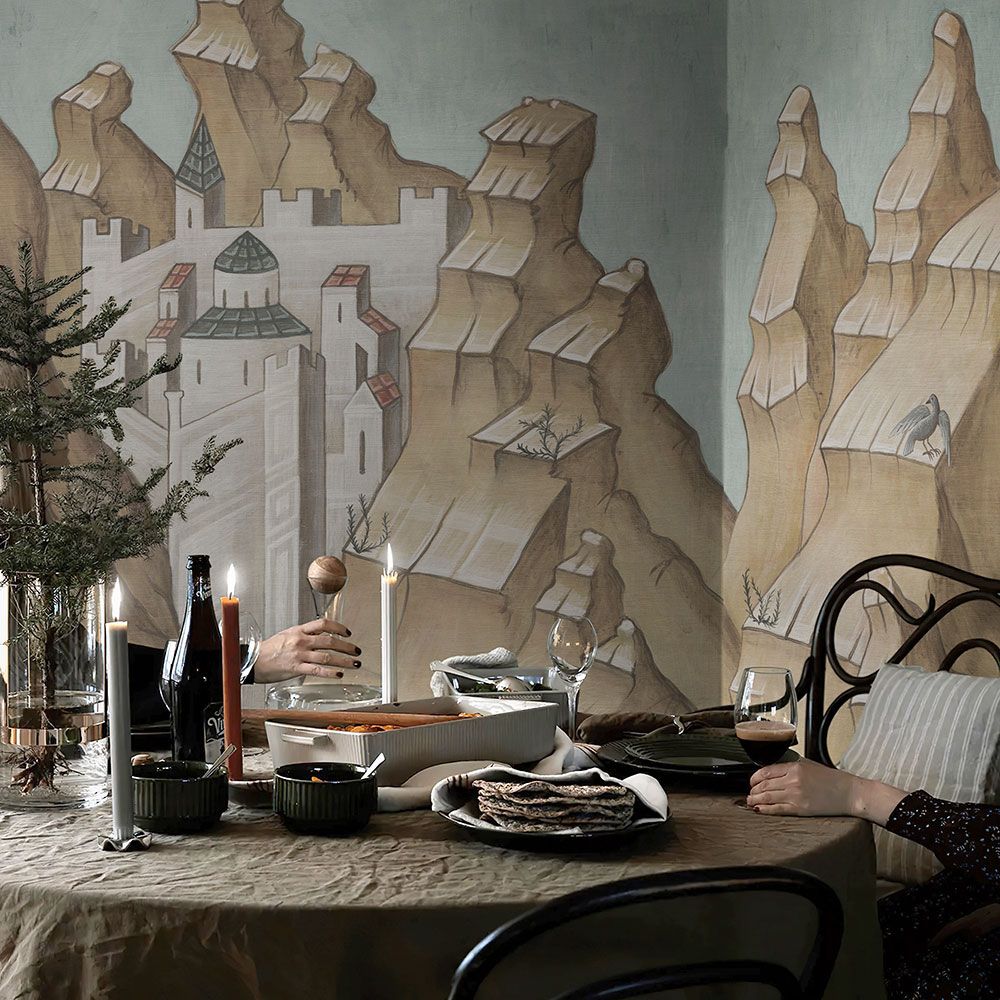 BISANZIO — необычная и глубокая модель, вдохновлённая древнерусским искусством. В её основе — эстетика фресок и приёмы, знакомые по старинным иконам. Цветовая палитра спокойная, натуральная, она передаёт умиротворение пейзажа и помогает создать в интерьере атмосферу тишины, уюта и созерцательности. Над моделью работала наша художница Мария, сумевшая не только сохранить каноничность формы, но и сделать сюжет визуально актуальным и по-настоящему художественным. В поисках аутентичности мы обратились к источникам — вдохновлялись фресками XV века, в том числе изображениями Новгорода. Для нанесения фактур применялась уникальная техника с использованием яичного желтка — так, как это делали мастера прошлого. Композиция сочетает в себе два мира: уют старинного города и величие горных уступов. Статичность архитектуры и движение природы соединяются в единой гармонии. BISANZIO — это образ-переход, история, рассказанная языком цвета, формы и древнего мастерства.