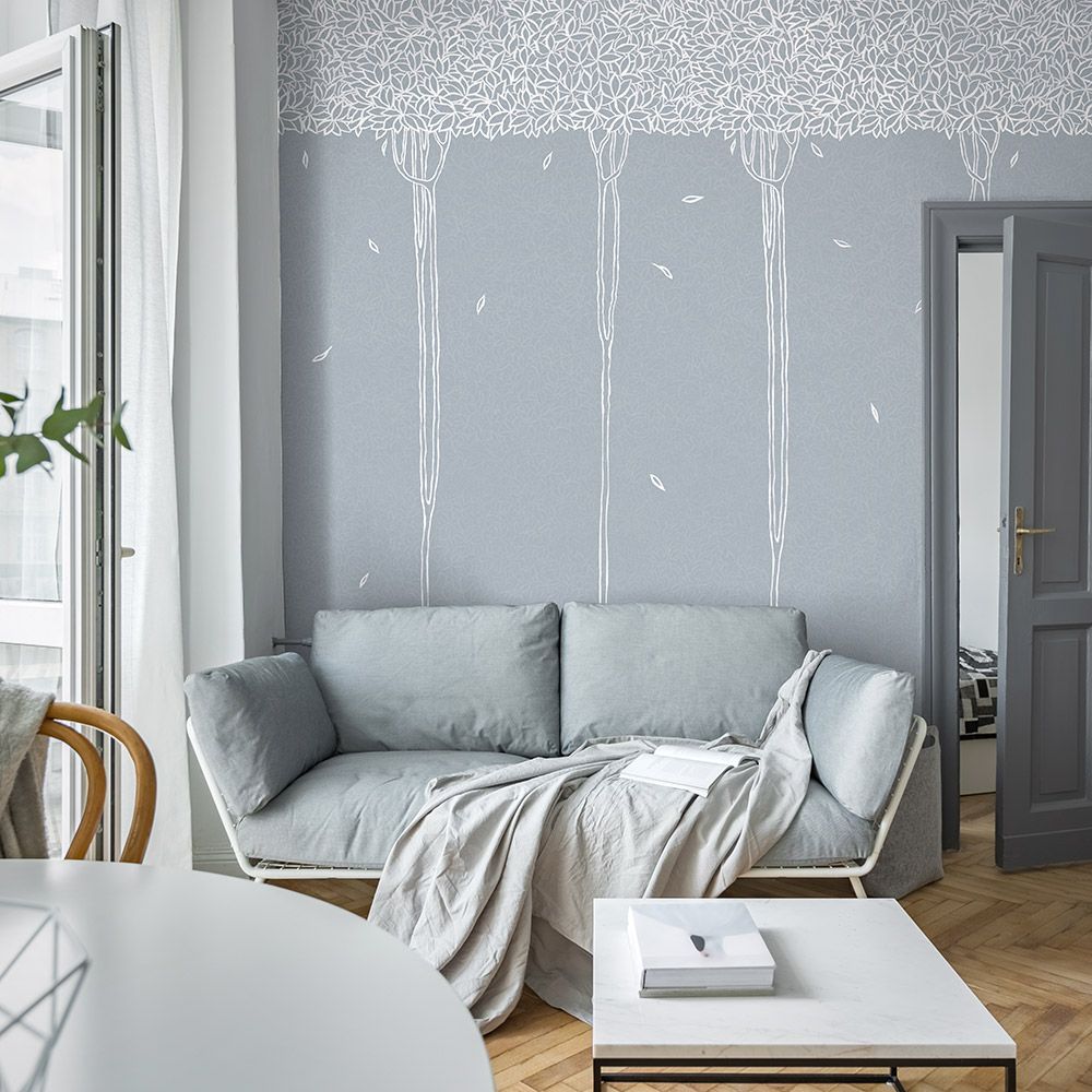 BOSCHETTO – обои, посвященные растительному миру. Стильный дизайн покрытий придаст обстановке гостиной или столовой благородный, элегантный вид. Рисунок выполнен в виде деревьев с тонкими стволами, которые венчают густые кроны. Такое решение поможет визуально сделать потолок выше, расширить пространство, наполнить его светом.