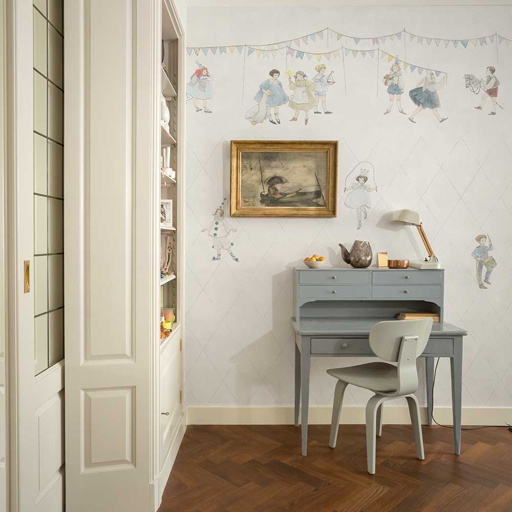 Такие обои наполнят пространство динамикой, лёгкостью и радостным настроением, превращая каждый день в игру и маленькое чудо. CARNIVAL прекрасно подойдёт для детской младших школьников или девочек среднего возраста — тех, кто обожает фантазировать, придумывать истории и жить в мире красочных впечатлений. С ними комната становится местом вдохновения, творчества и настоящей беззаботности.