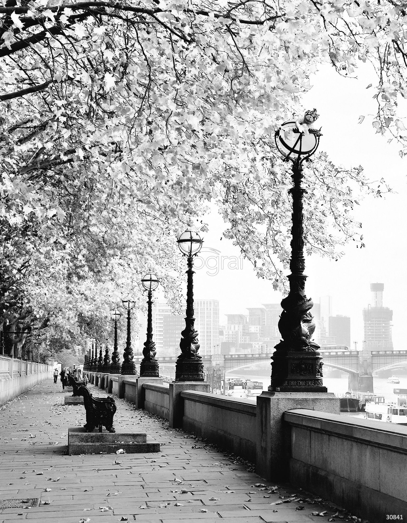 Алея с лавочками, старинными фонарями и деревьями на набережной создает атмосферу уюта и спокойствия в большом городе. На фото изображена знаменитая набережная Темзы — "Victoria Embankment" в Лондоне, рядом с Вестминстерским мостом.