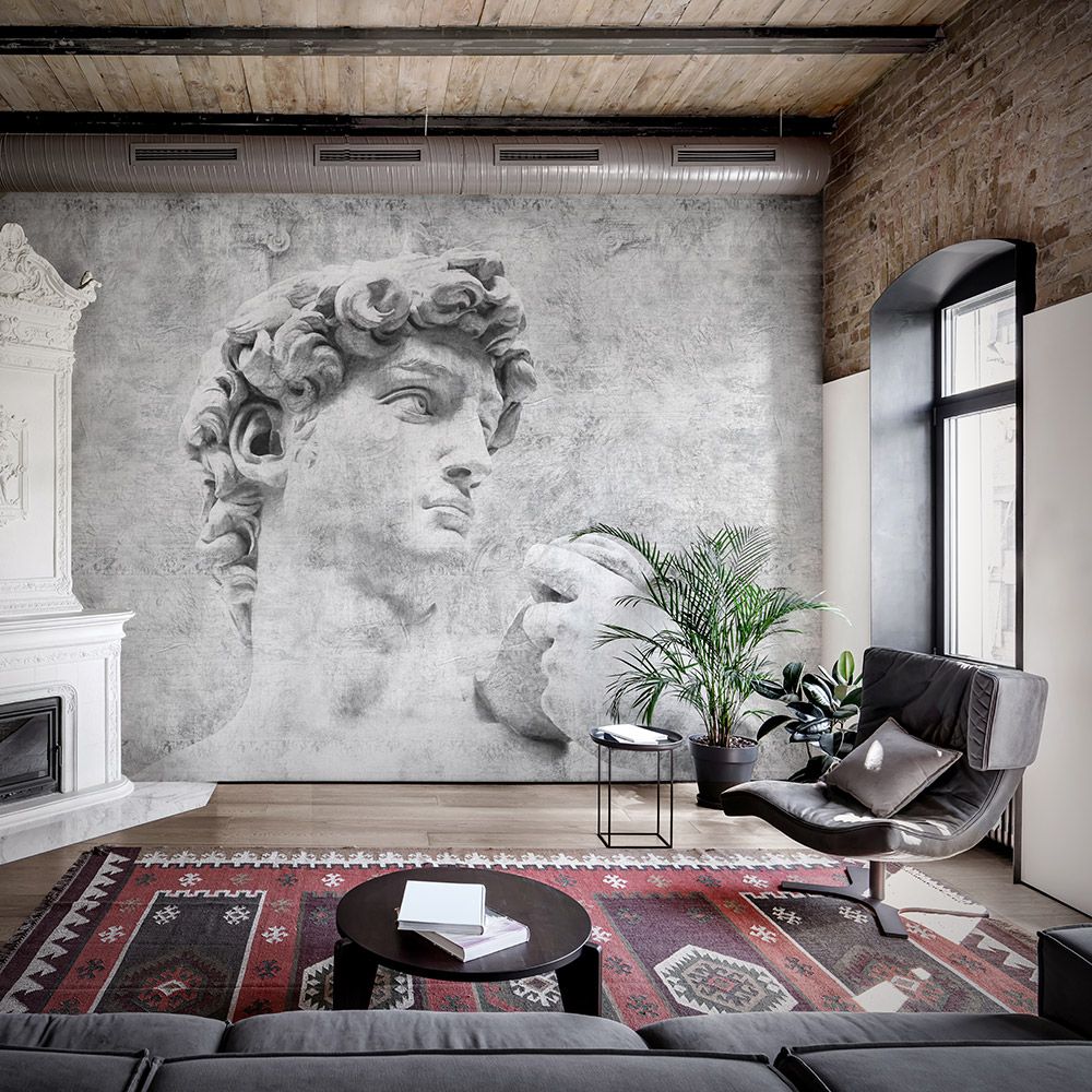 DAVID – строгие обои с изображением бессмертного творения великого Микеланджело. Центральное изображение – скульптура Давида, являющаяся настоящим символом Эпохи. Для покрытий выбран акцент на голову статую со взглядом, устремленным вдаль.