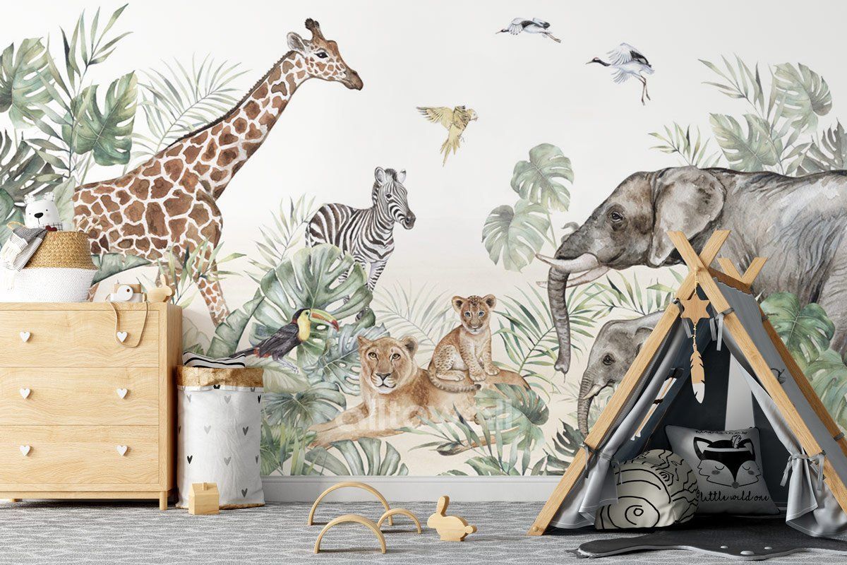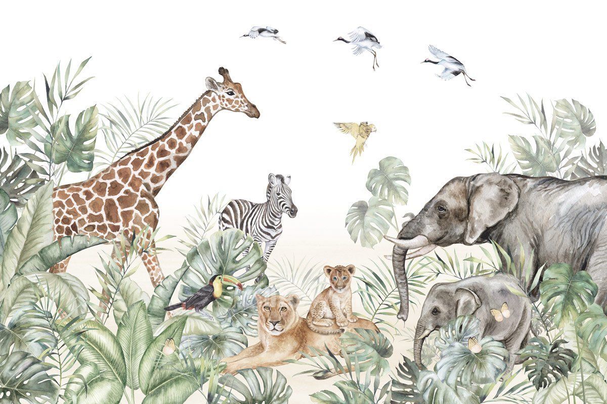 Погрузитесь вместе с малышом в яркий и насыщенный мир тропиков, где за каждой веткой скрывается что-то интересное. Зелёные листья, экзотические животные и птицы — всё это будто зовёт навстречу приключениям. Обои «Джунгли-3» наполнят детскую яркими красками, энергией открытий и пробудит любопытство. Пусть экспедиция в джунгли начнётся прямо сейчас!