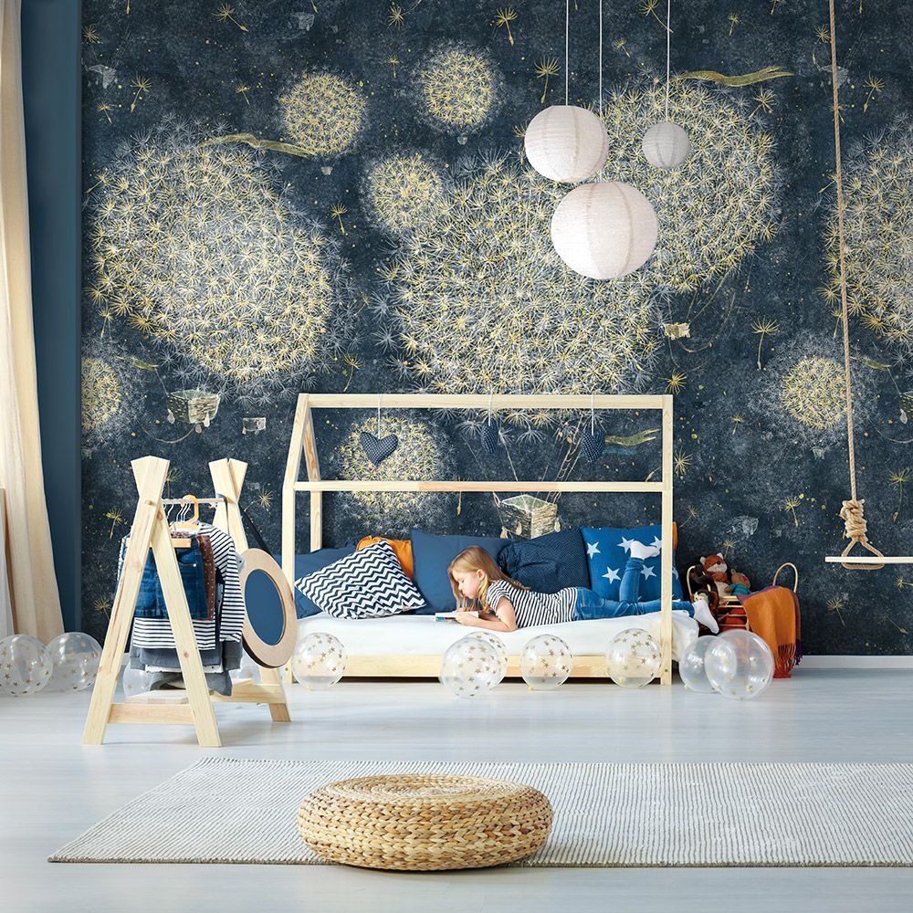 EXUPERY – волшебная сказка, которая словно вышла со страницы книг известного французского писателя. Для обоев использован простой и гармоничный сюжет – небесный простор, на фоне которого медленно и неспешно слывут воздушные шары с прикрепленными корзинами для путешественников. Но это не обычные шары – это легкие и невесомые головки одуванчика, разлетающиеся едва светящимися пушинками.