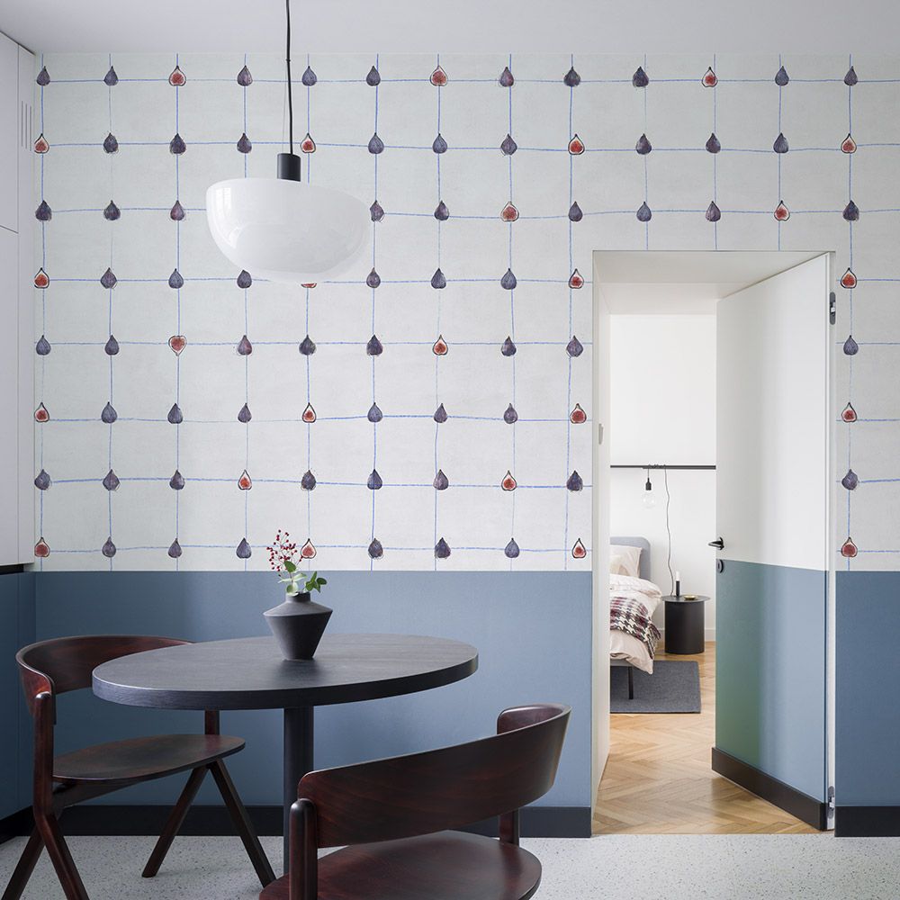 FICHI – результат интересного эксперимента наших художников и дизайнеров. Модель посвящена инжиру, который стал акцентной деталью обоев. В каталоге предлагается два варианта покрытий – изображение инжира на фоне строгой клетки и рисунок в стиле примитивизма с темным фоном, яркими, насыщенными оттенками основных элементов. Первый вариант подходит для спокойной и легкой обстановки, спальни или гостиной. Второй более смелый и яркий, кажется, что это ребенок взял цветные ручки и разрисовал стену.
