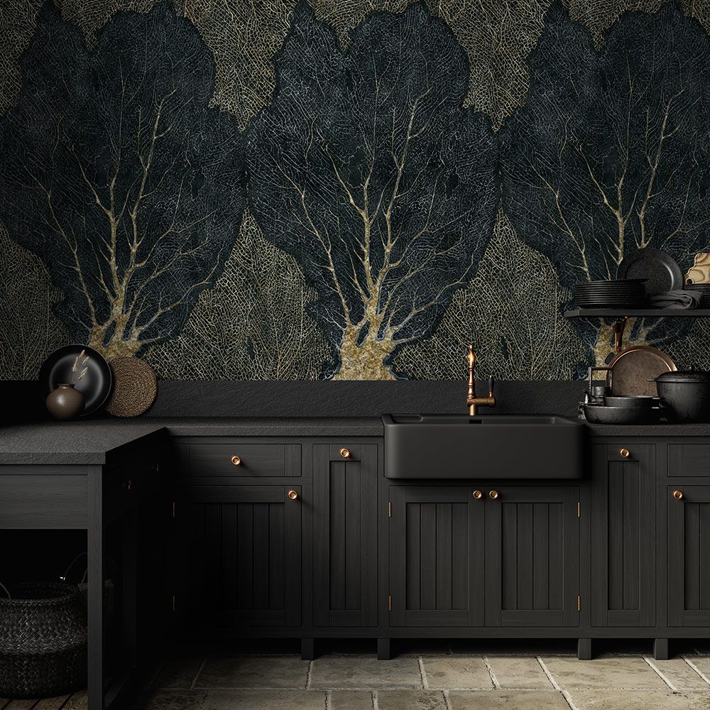 FORESTA – обои, которые сразу притягивают к себе взгляд, благодаря необычному дизайну. Изображение выполнено в виде стилизованного леса, но особая техника рисунка, тонкие и ломаные линии создают иллюзию волшебного мира коралловых зарослей на дне моря.