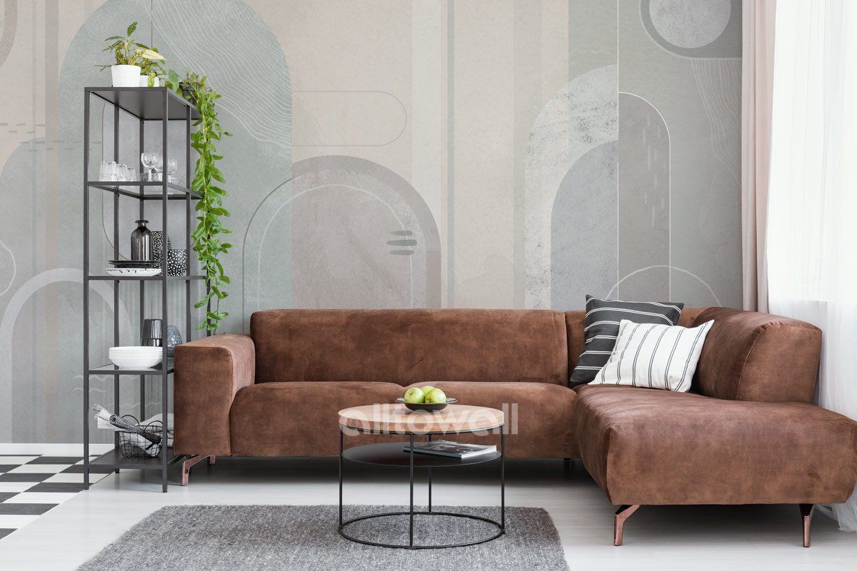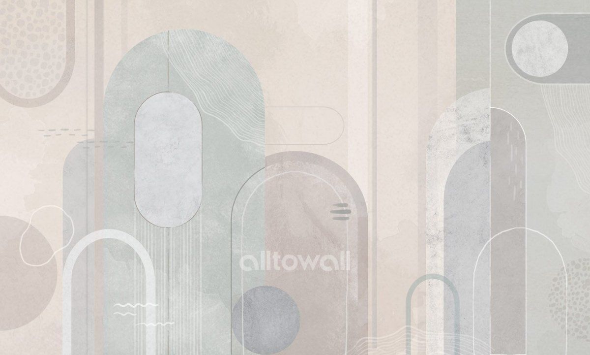 Светлые обои для спальни или гостиной с абстрактным геометричным принтом. «Геометрия пространства-1» — сюжет, который станет украшением интерьера в стиле современной классики.
