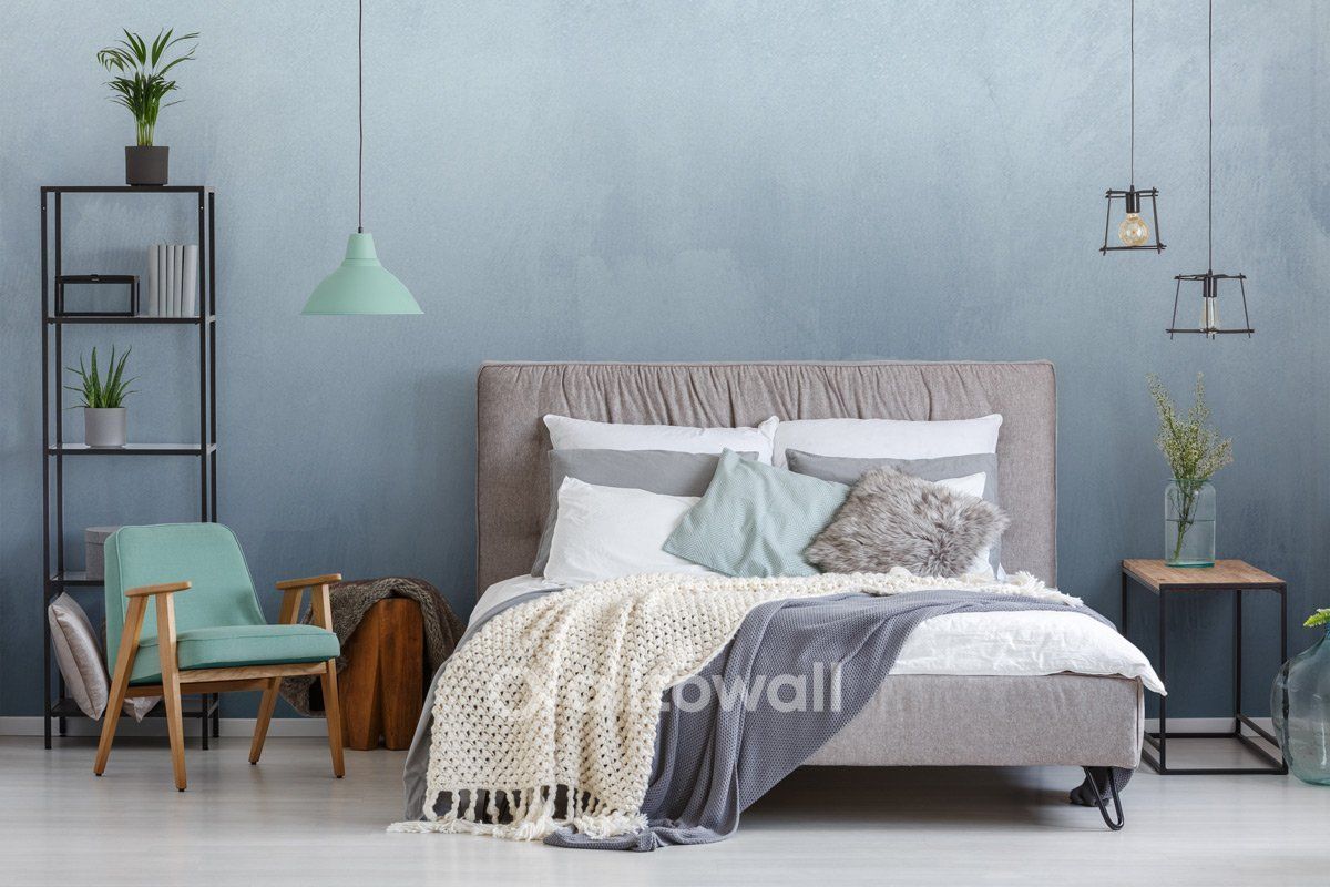 Обои в припылённых оттенках синего и голубого помогут создать расслабленную атмосферу в спальне и добавят уюта гостиной. Благодаря необычной текстуре, напоминающей широкие мазки масляными красками, сюжет визуально увеличивает пространство.