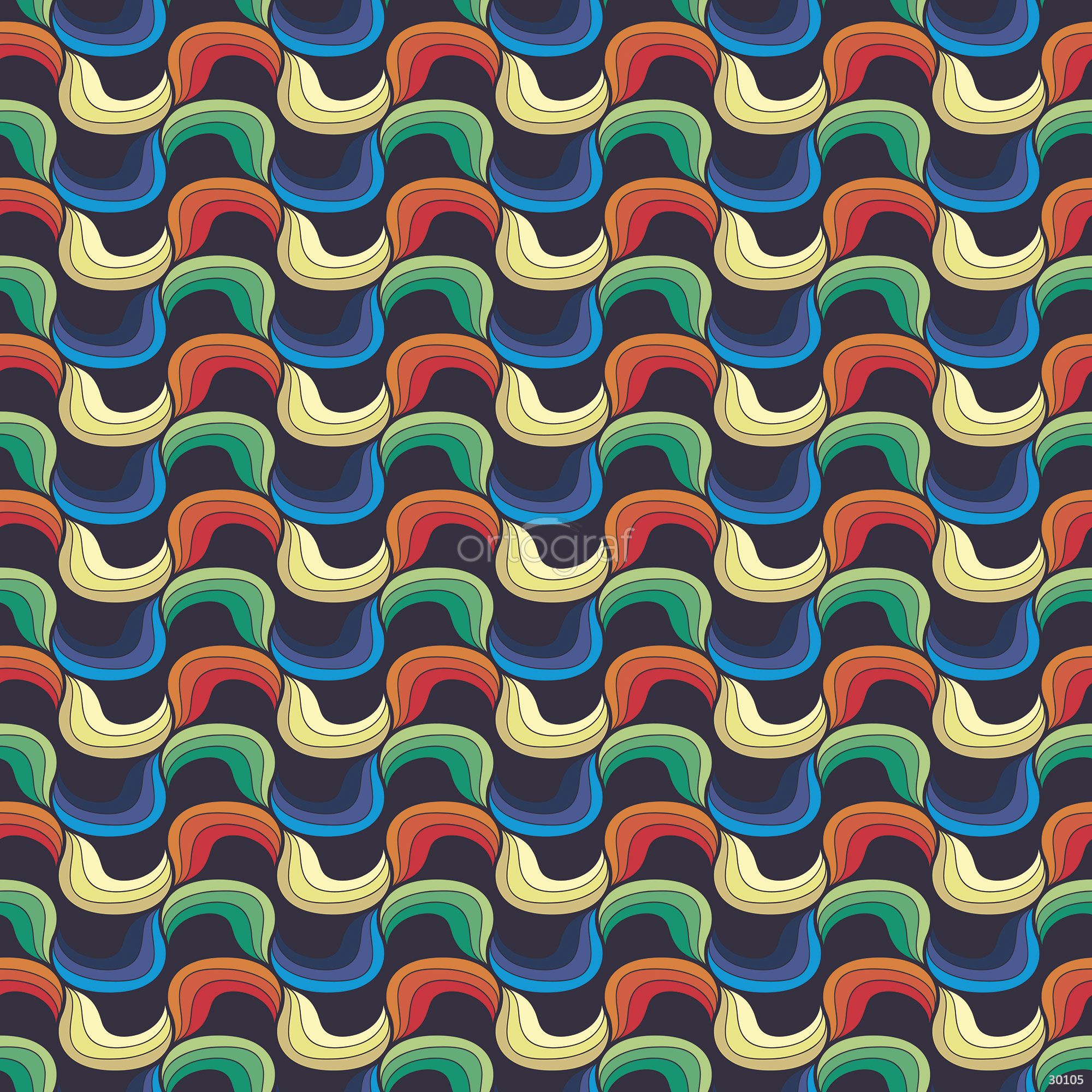 На изображении представлен абстрактный узор, состоящий из ритмично повторяющихся волнообразных форм, создающих ощущение движения и глубины. Элементы узора плавно переплетаются между собой, образуя динамичный, гармоничный орнамент без явных сюжетных объектов или сцен.