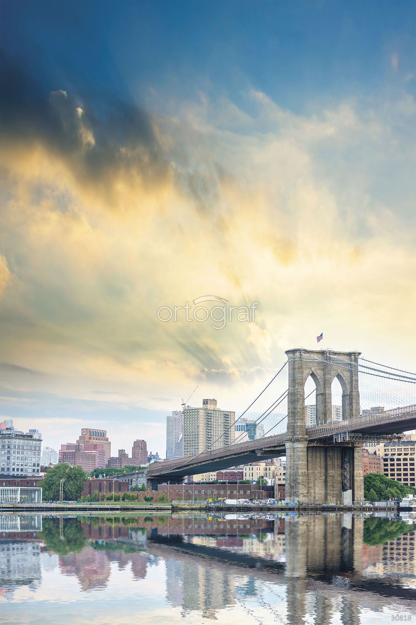 Городской мост в дневном свете с отражением в воде на фоне просторного неба создает атмосферу свежести, свободы и простора мегаполиса. Такой сюжет визуально расширяет помещение, добавляет свет и гармонию, отлично подходит для современного интерьера.