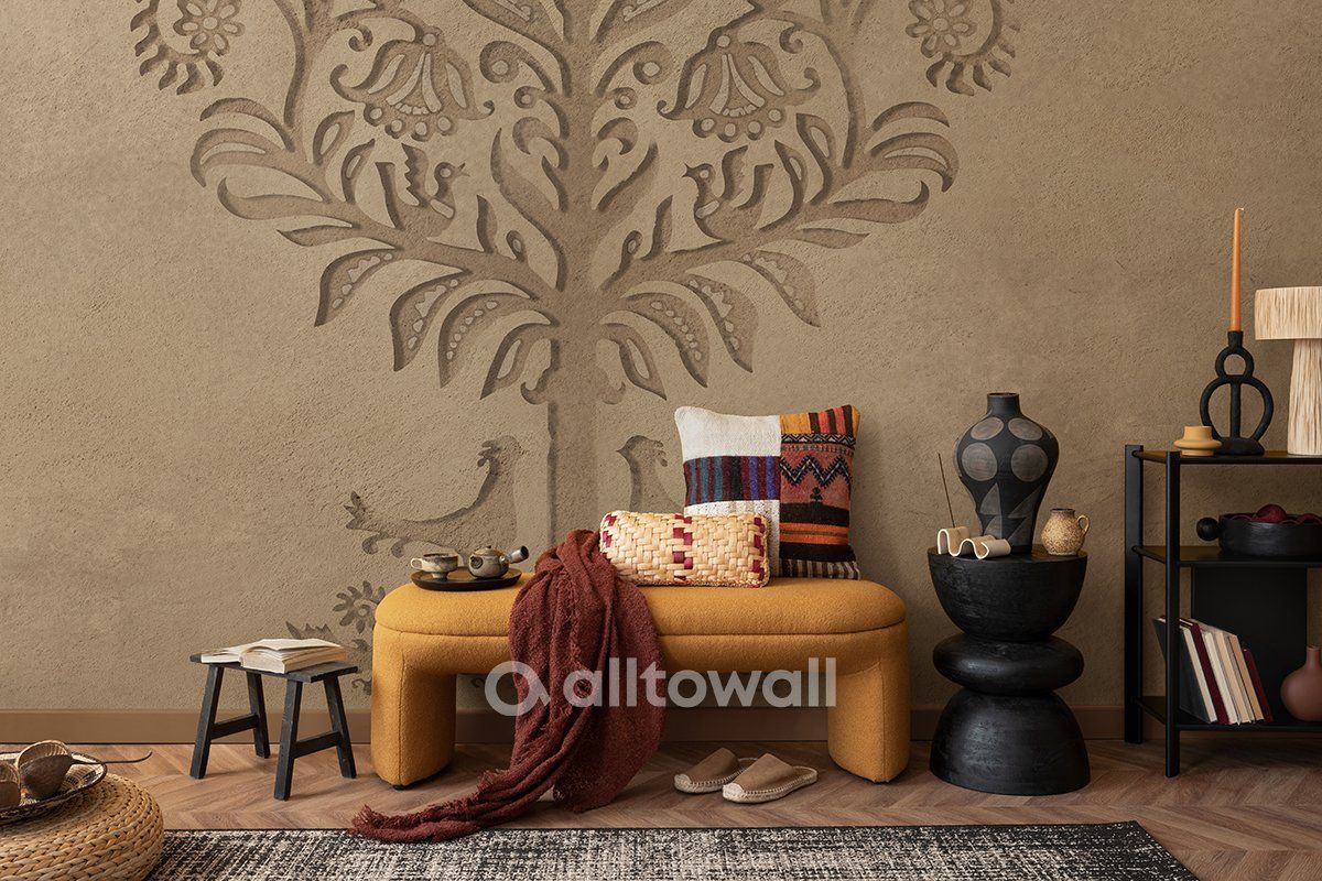 Помните ли вы иллюстрации из книг, которые были в нашем детстве? Каждая сказка начиналась с большой и красочной буквы с витиеватыми элементами, листочками и цветами. Мы вдохновились этим тёплым воспоминанием и создали обои «Каменный цветок».