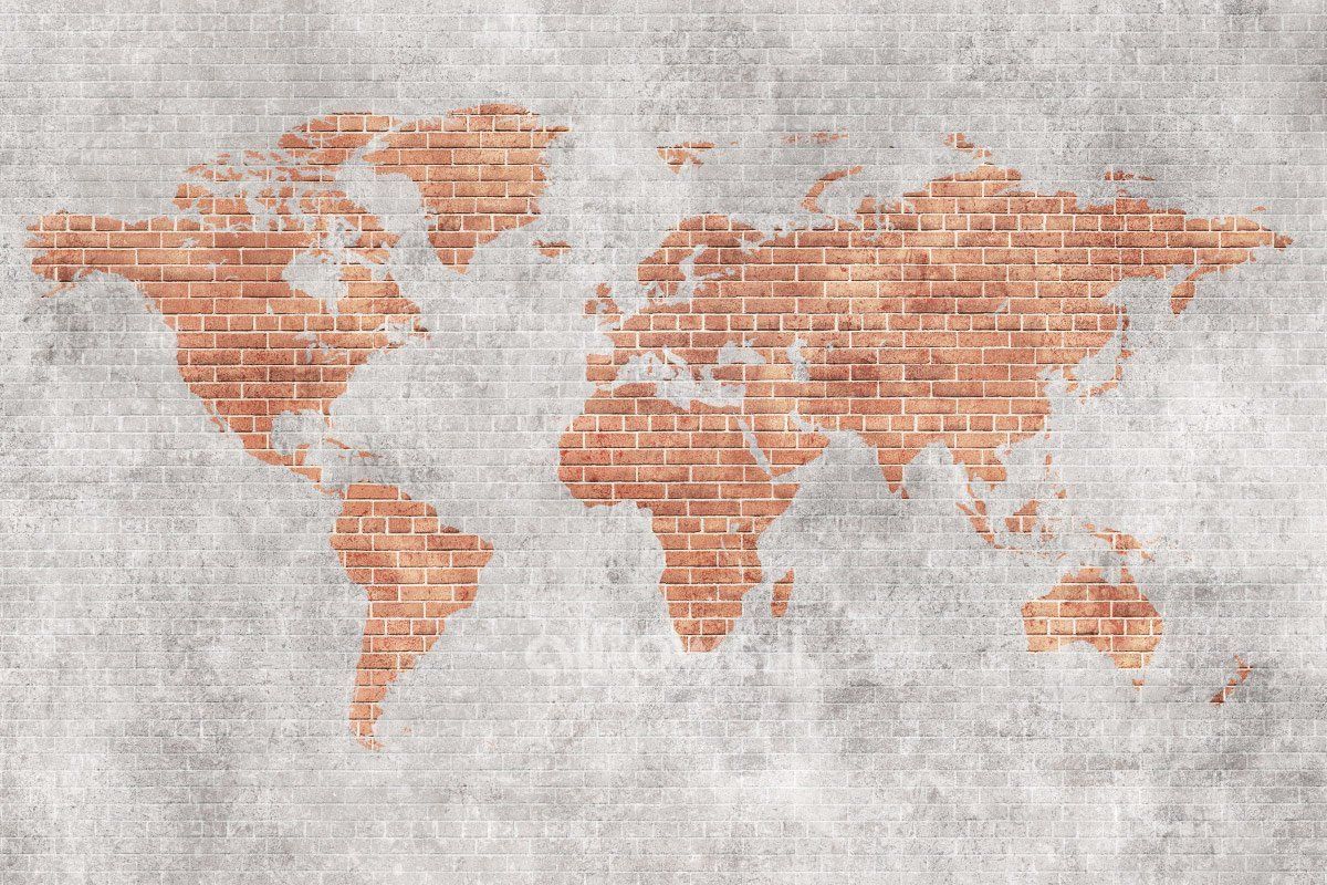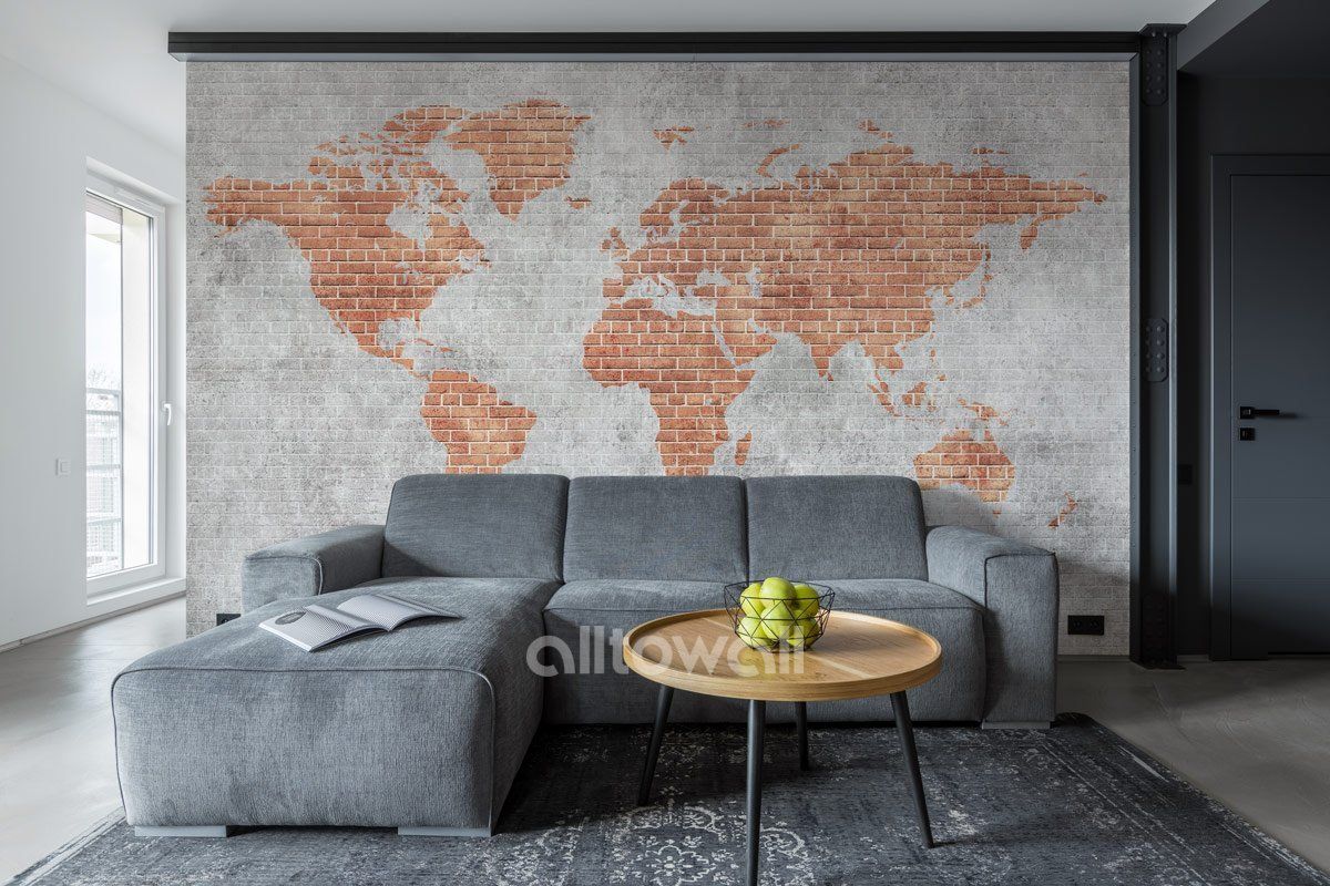 Сочетание серого и красного кирпича, брутальная текстура и очертания континентов. «Кирпичная карта мира» — сюжет в индустриальном стиле для вашего лофтового пространства.