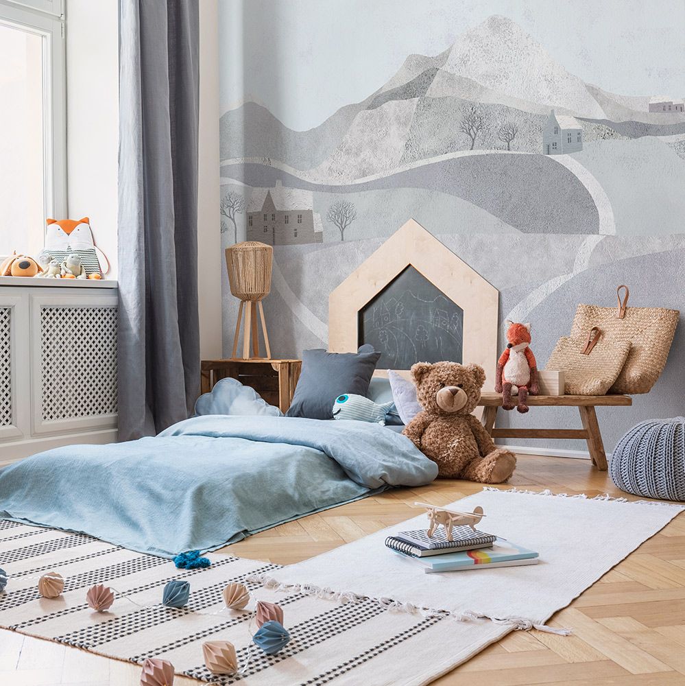 LANDSCAPE – обои, разработанные нашими художниками для комнаты ребенка. Основная идея – пейзаж, который каждый может создать для себя самостоятельно. Спокойный вид на горы и строения может находиться в любом уголке мира, это плод фантазии и мечты, где можно отдохнуть и забыть о тревогах. Такие обои для детской комнаты создают умиротворяющую, гармоничную атмосферу, подходящую для отдыха ребенка любого возраста.