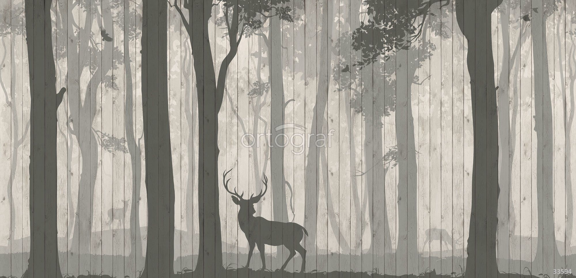Силуэты деревьев и животных в туманном лесу создают спокойную, умиротворяющую атмосферу и визуально добавляют глубину помещению. Такой рисунок отлично подчеркнёт природную тематику интерьера, придавая ему элегантность и гармонию с акцентом на натуральные мотивы. Особенно хорошо подойдёт для пространств отдыха или оформления акцентных стен.