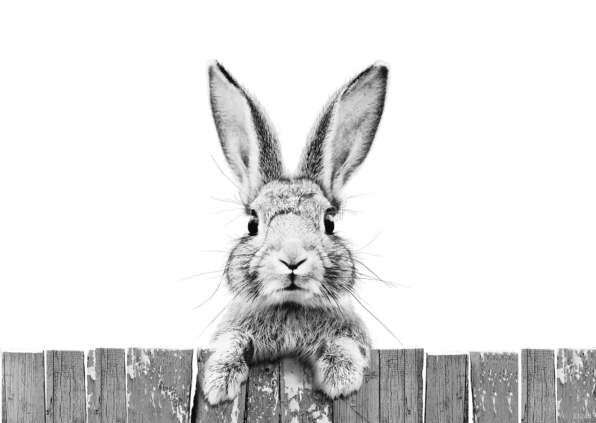 Забавный кролик выглядывает из-за деревянного забора, создавая атмосферу уюта и дружелюбия. Такой рисунок добавляет нотку игривости и тепла в интерьер, делая пространство более живым и оригинальным. Идеально впишется в комнату для отдыха, общения или семейных событий.