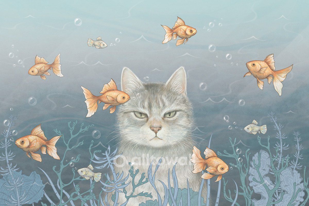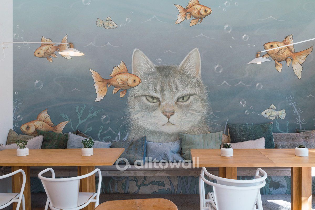 Обои «Мечтатель» станут идеальным решением для комнаты ребёнка любого возраста, детского кафе или комнаты отдыха, предназначенной для малышей. Основным героем стал пушистый кот, который с серьёзным видом наблюдает за очаровавшими его золотыми рыбками. Лёгкая ирония и природные мотивы позволяют использовать покрытия для оформления практически любого пространства.