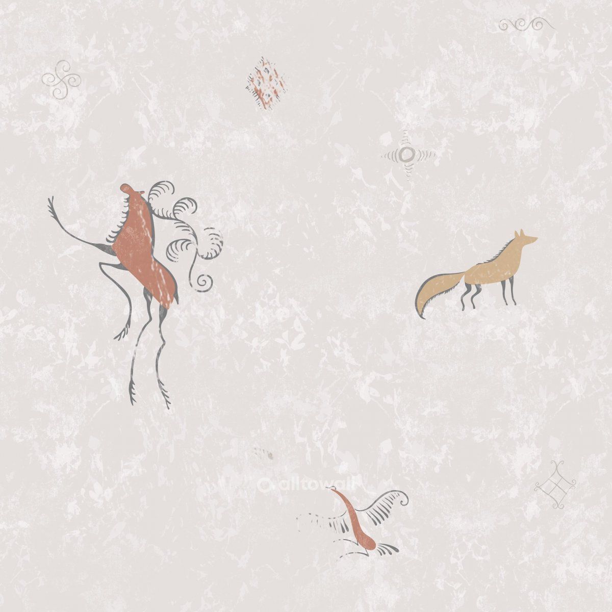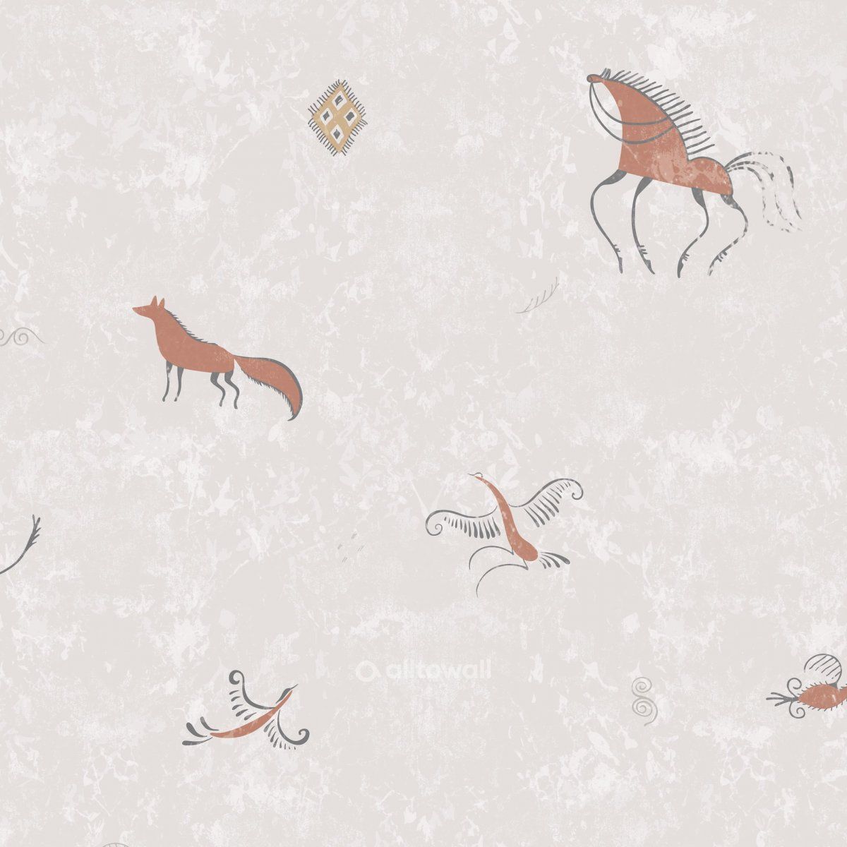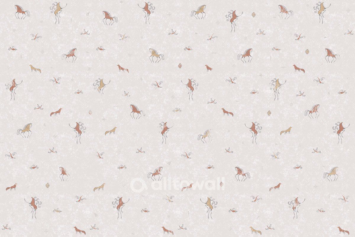 Главными персонажами мезенского декора всегда были лошади и олени. Мы взяли за основу этих персонажей, добавили лисичек и создали эти обои. Сюжет «Мезенская сказка-1» в тёплых оттенках может стать украшением детской или спальни.