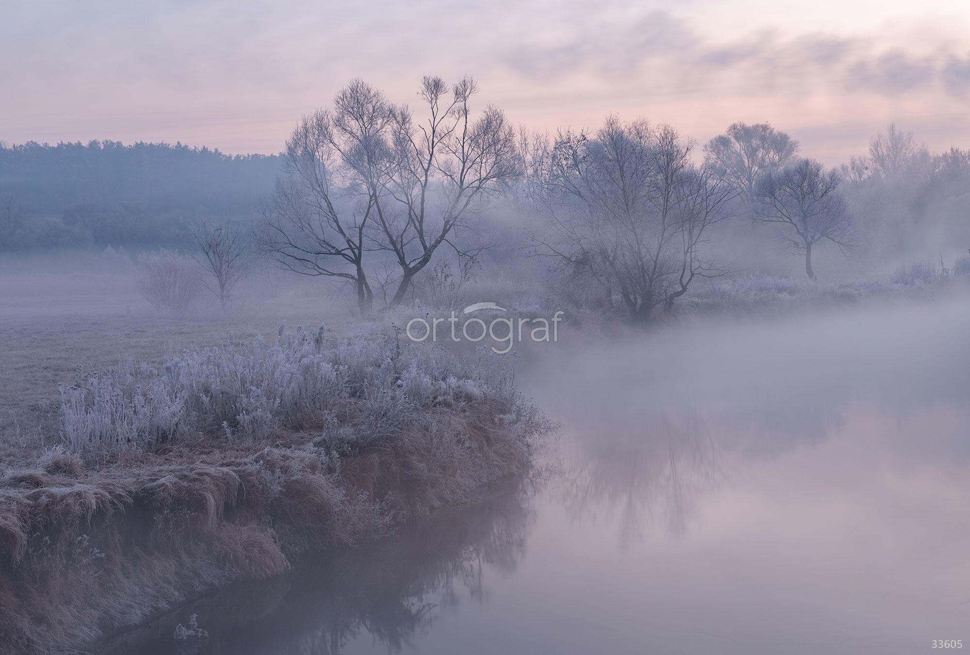 Туманный утренний пейзаж с рекой, заснеженной травой и деревьями создаёт атмосферу спокойствия и умиротворения. Такой сюжет наполняет пространство ощущением прохлады, гармонии и тишины, помогает визуально “растворить” границы комнаты. Особенно хорошо подойдёт для оформления зон отдыха и расслабления в лаконичных современных интерьерах.